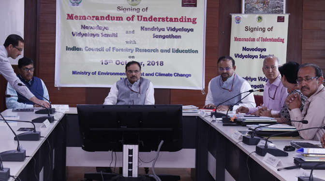 ICFRE Signs MoU with Navodaya Vidyalaya Samiti and Kendriya Vidyalaya Sangathan on 15th October, 2018 at MoEF&CC, New Delhi