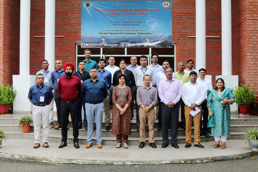 देहरादून स्थित वन अनुसंधान संस्थान ने 23 सितंबर 2022 को भारतीय तटरक्षक बल के अधिकारियों के लिए "तटीय पारिस्थितिकी तंत्र का संरक्षण और प्रबंधन" विषय पर एक सप्ताह का प्रशिक्षण पाठ्यक्रम आयोजित किया