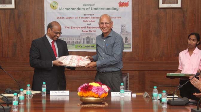 Signing between ICFRE, Dehra Dun and The Energy and Resources Institute (TERI), New Delhi